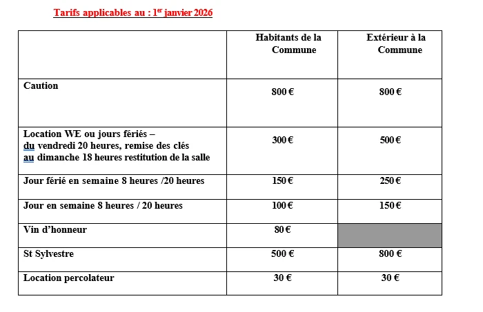 - éventuellement, vous facturera les ustensiles cassés ou manquants et vous informera sur les modalités de paiement à la Commune des grosses dégradations,